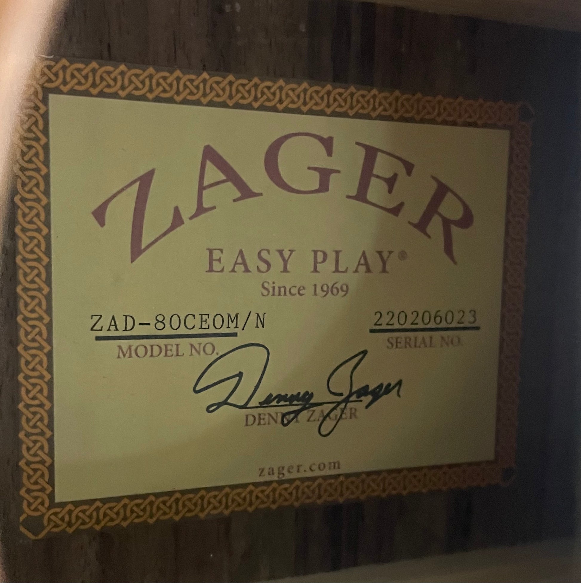 GENERAL INFO (From Manufacture)60 years of playing, performing and teaching guitar has given Denny an advantage over the majority of guitar builders today. Denny understands the demands of the professional player because he is one. He discovered there are certain key elements that make a great guitar, and with that knowledge he created the Zager ZAD80 Series. Elements like solid wood construction, high quality hardware, a custom neck design that feels good in your hand, string spacing that allows you to move faster on the fret board, that simultaneously prevents buzzes and rattles, combined with a special bracing system that produces one of the best sounds in the guitar industry today. Read more