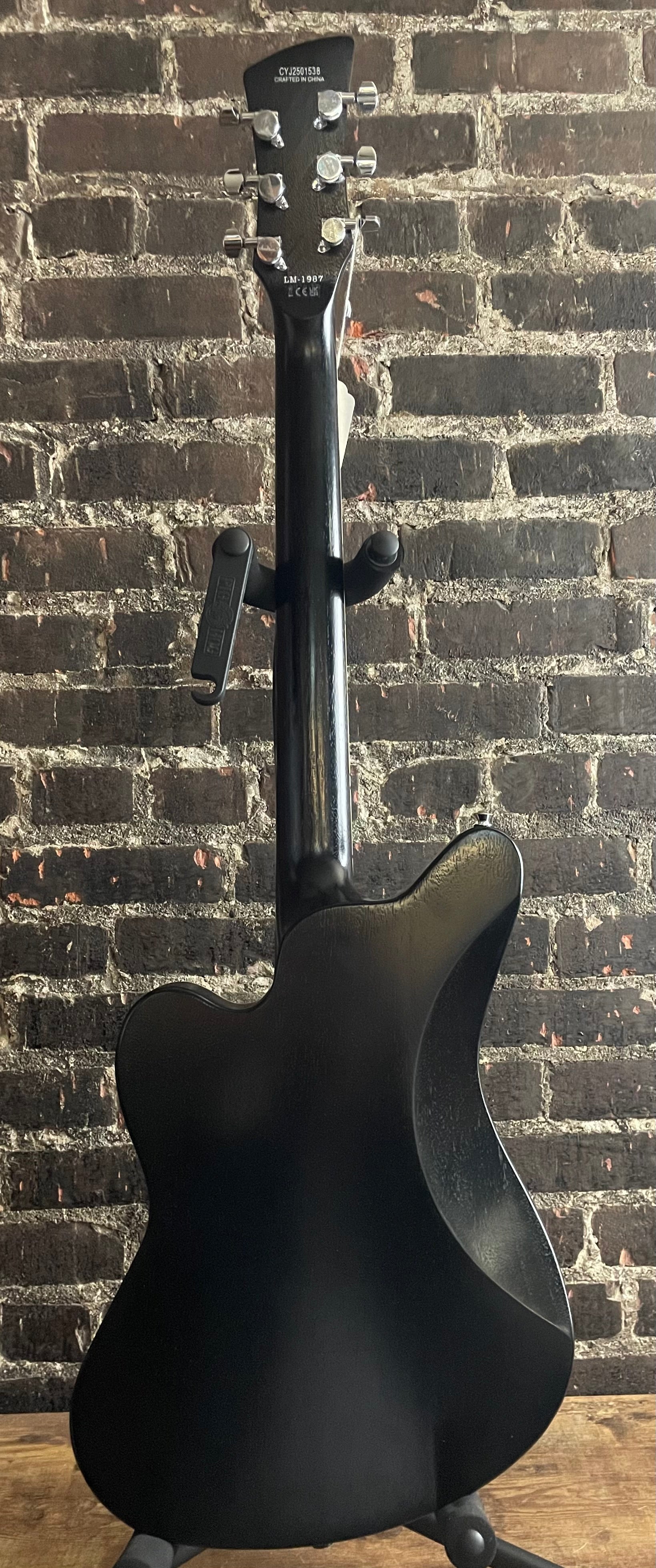 The Jackson Pro Series Signature Lee Malia LM-87 electric guitar is a masterful blend of vintage aesthetics and modern performance, designed in collaboration with Bring Me the Horizon guitarist. With its offset Starcaster body shape and open-pore black finish, the LM-87 exudes understated elegance while delivering exceptional tonal clarity and playability. Its okoume body and 3-piece set-neck construction offer a resonant foundation, reinforced with graphite for stability during heavy riffing and low tunings. Equipped with Jackson LM-87 signature pickups and a TOM-style adjustable bridge, this guitar provides the tonal power and precision required for Malia's intricate and aggressive playing style.